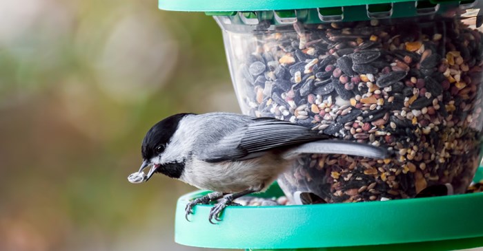 Chickadees observe a hierarchy in their flocks. So if you see one land on the feeder, another may quickly land and chase away the lower-ranking bird, snappishly reminding it to wait its turn!