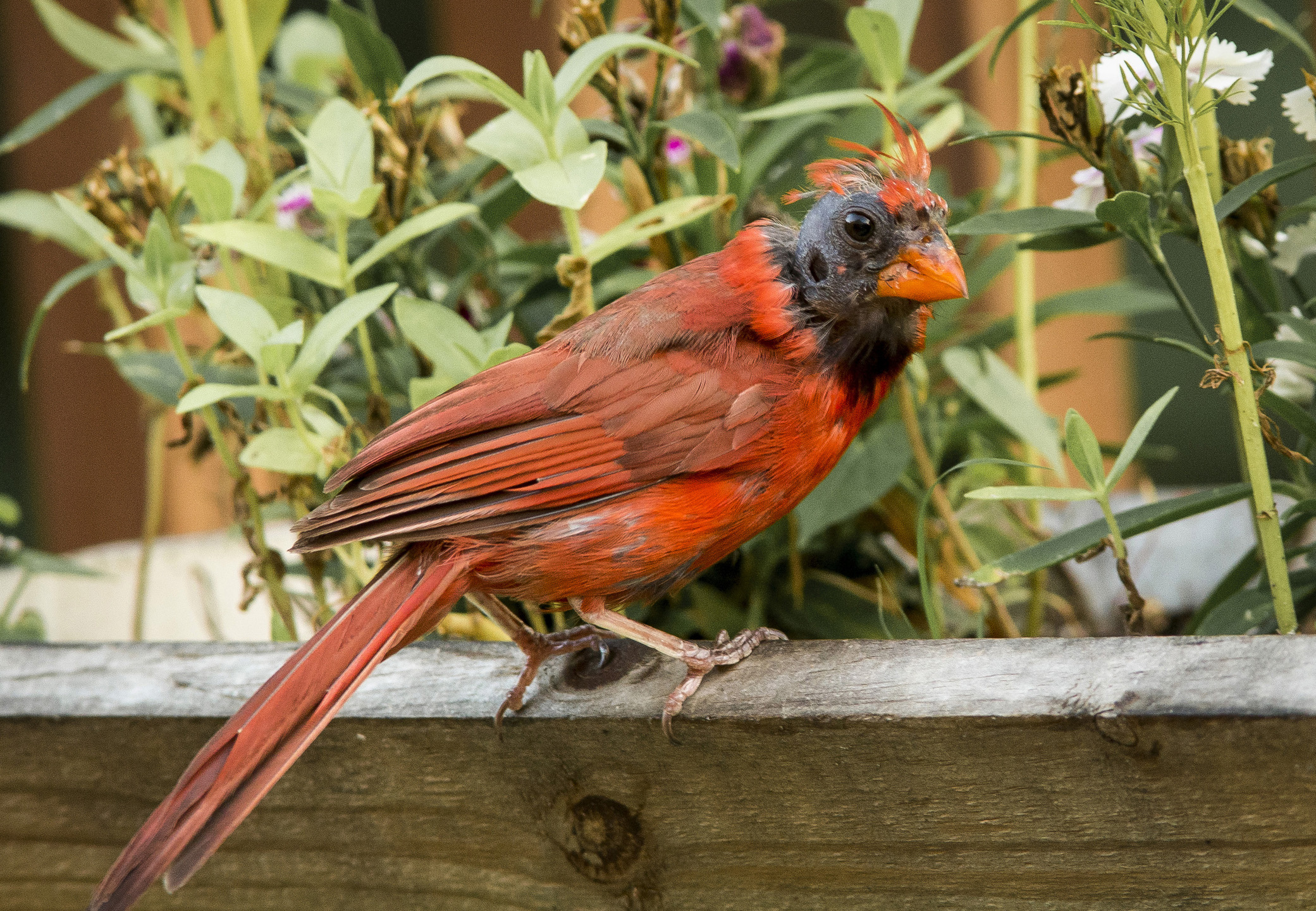 We think of songbirds as blissfully free of problems that plague humans, but it turns out that baldness is not one of them. Yes, you just might spot a bird landing on your feeder without any head feathers whatsoever. This gives them a rather odd appearance. It can also be disconcerting, because it leads one to think the bird was ill or had survived some kind of attack.