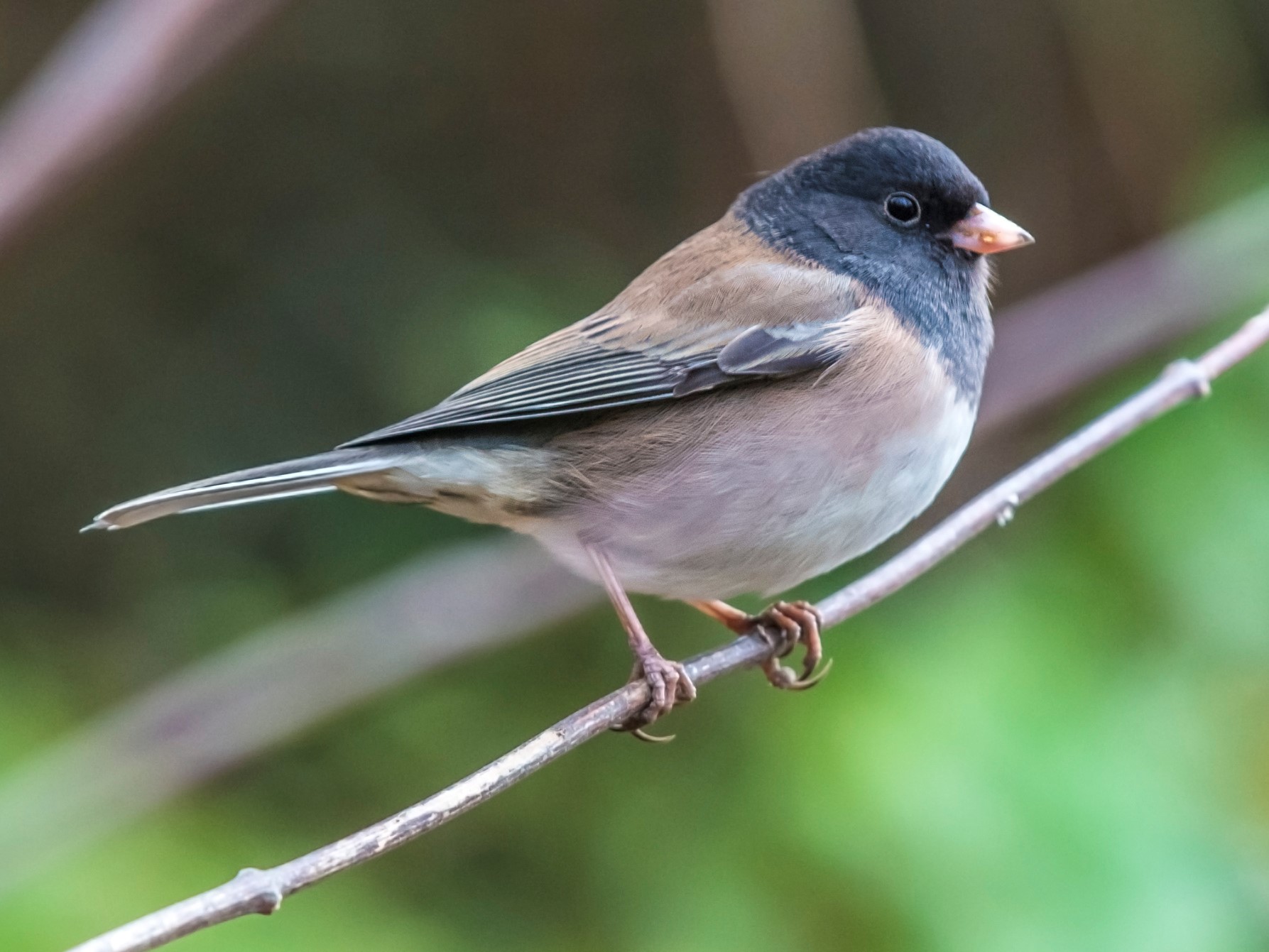 Depending on where you are in the U.S., the plumage of the Dark-eyed Junco can look very different from region to region. In fact, until the 1980s, juncos were split into five distinct species. But now, they’re lumped together, and when you talk about the Slate-colored Juncos (gray bellies), and Oregon Juncos (brown backs, reddish sides), Pink-sided Juncos and the White-winged Juncos, these are now classified as subspecies of the Dark-eyed Junco.