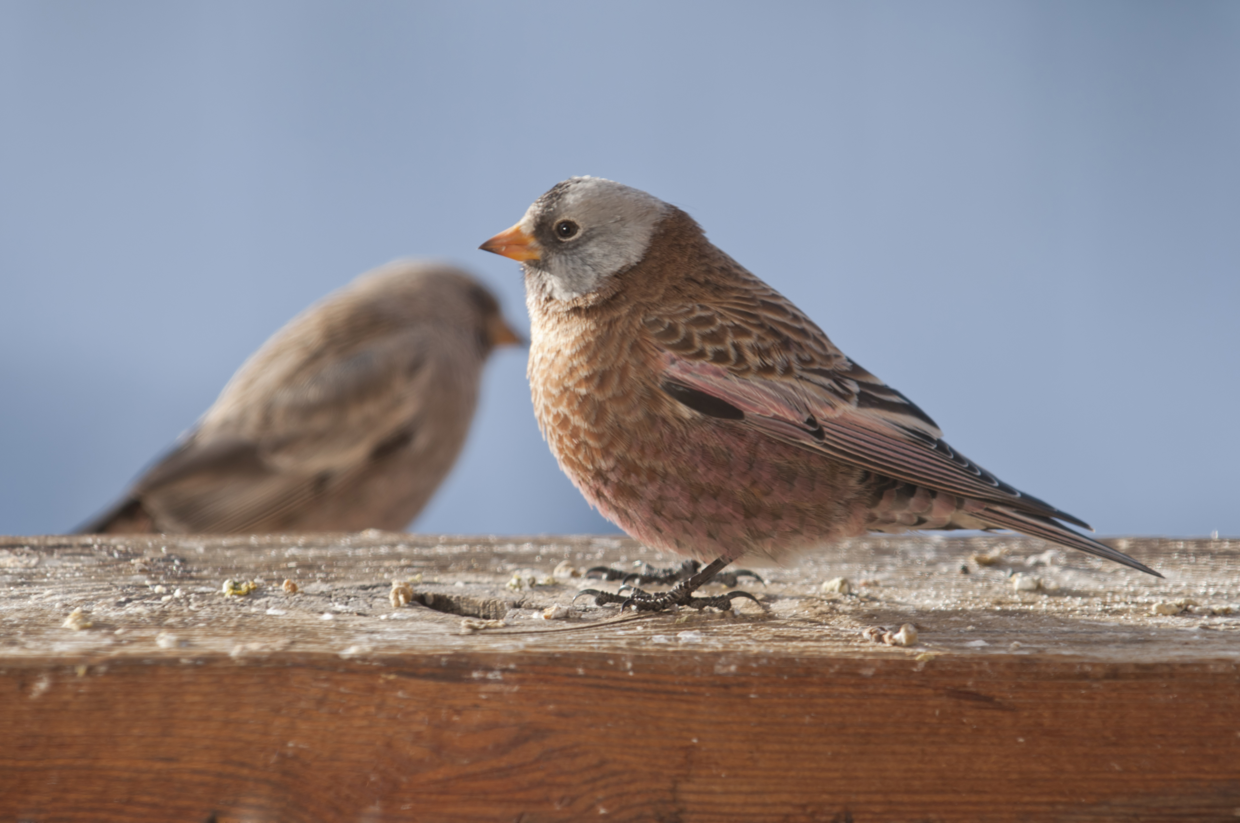 Scientists believe there are at least six subspecies of the Gray-crowned Rosy-Finch, with variations in size, shadings and amount of gray on their heads. Two subspecies that live year-round on Alaska’s Pribilof and Aleutian islands weigh twice as much as their counterparts.