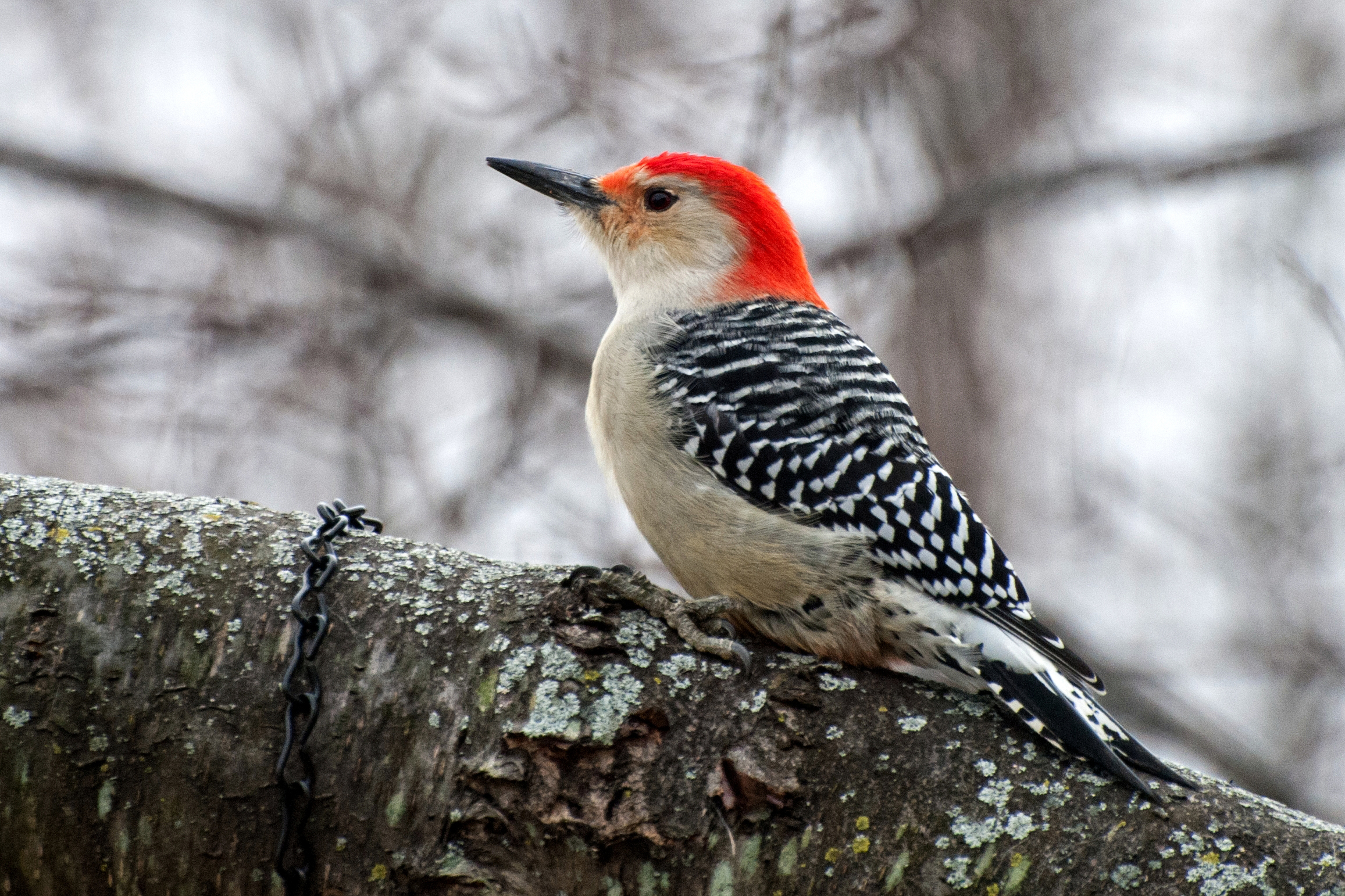 During the spring and summer, the best way to find the Red-bellied Woodpecker is by getting to know their calls. They’re spending their time up in the trees, nesting and foraging for insects on the bark and branches. Like many woodpeckers, they don’t have a song, but their signature sound is drumming on wood.