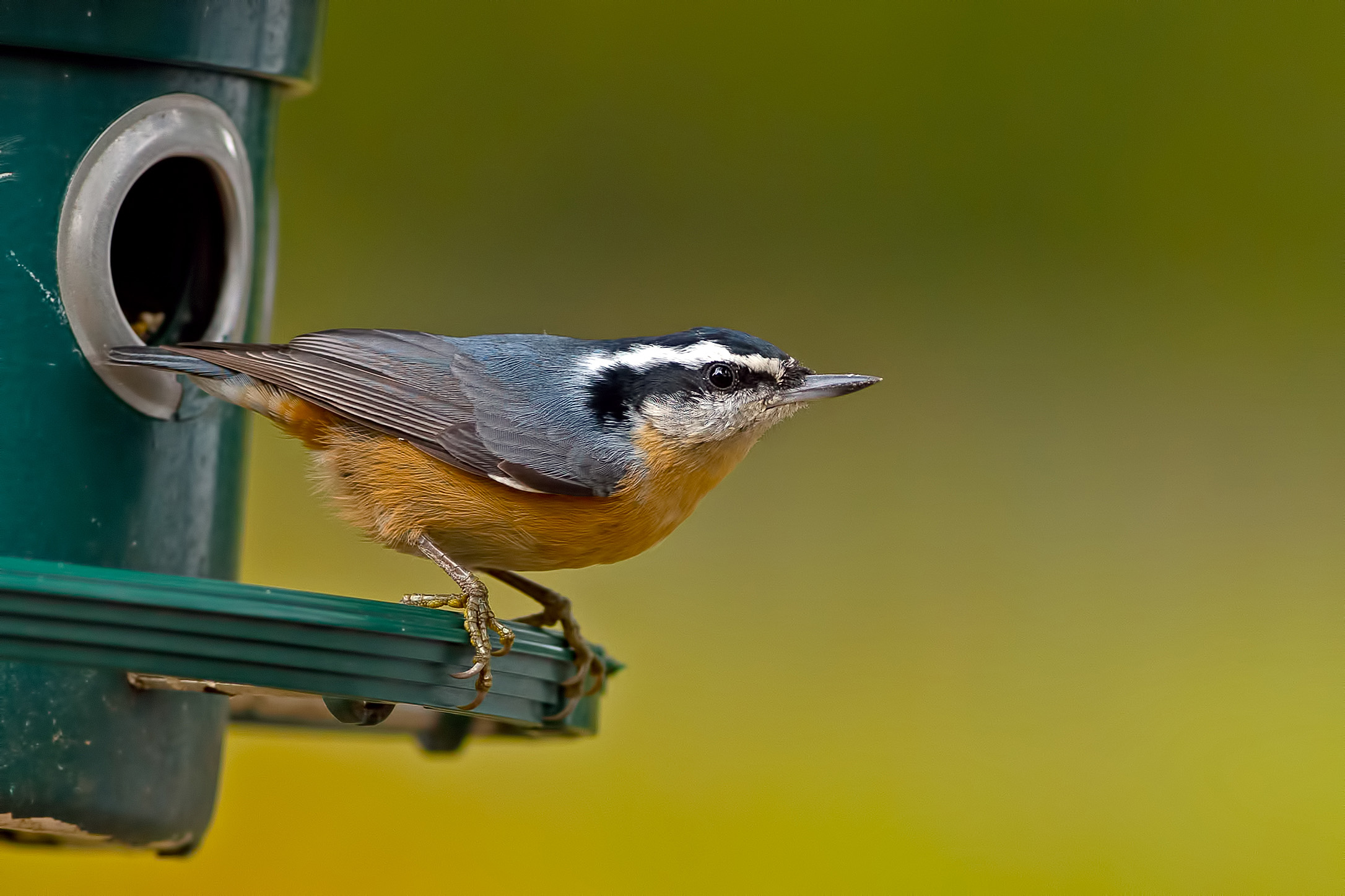 The Red-breasted Nuthatch is a busy, active bird that spends its waking hours in near perpetual motion. Despite their active, busy ways, for those who live near their habitat — conifer woodlands along much of the northern U.S. and the Rocky Mountain region — they’re pretty easy to find.