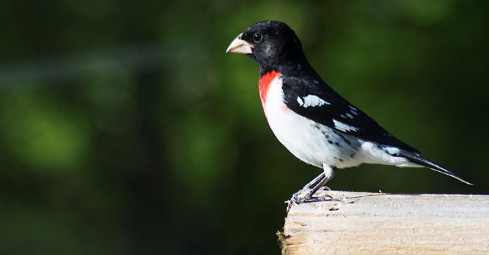 If you live in an area with plenty of young trees in the mix, you just might be able to attract a pair of Rose-breasted Grosbeaks. The males are handsome, striking birds, with black and white feathers and a splash of tomato-red on their breasts, sometimes shaped like a triangle. Females are brown and white. Both have stout, cone-shaped, pinkish-yellow beaks.