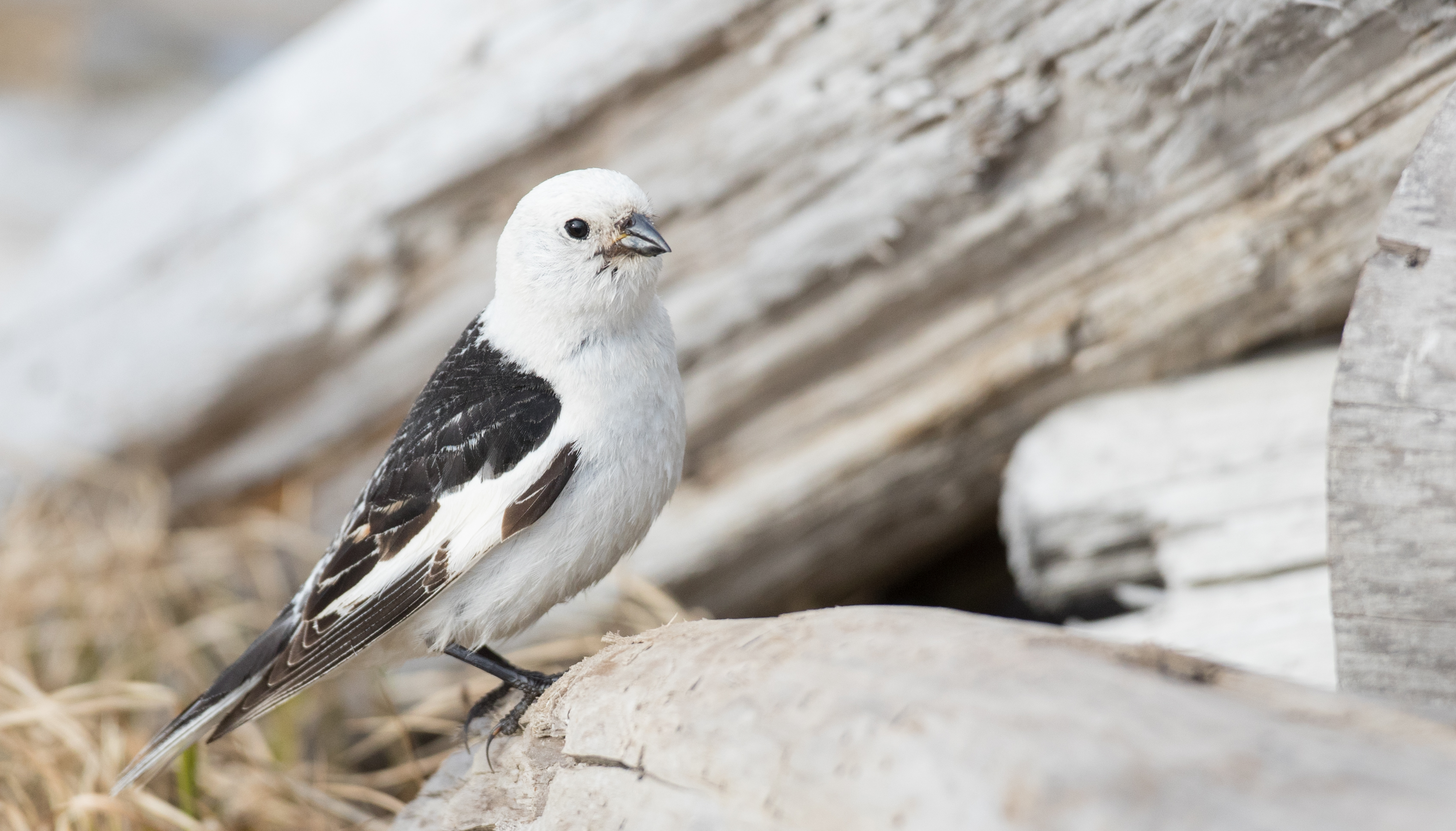 There’s little about a Snow Bunting that isn’t perfectly suited to life in the deep freeze. These winter wanderers are outfitted like little polar explorers, with a natural down parka of dense white feathers that cover even the birds’ ankles and base of the bill—and keeps their exposure to cold at a minimum.