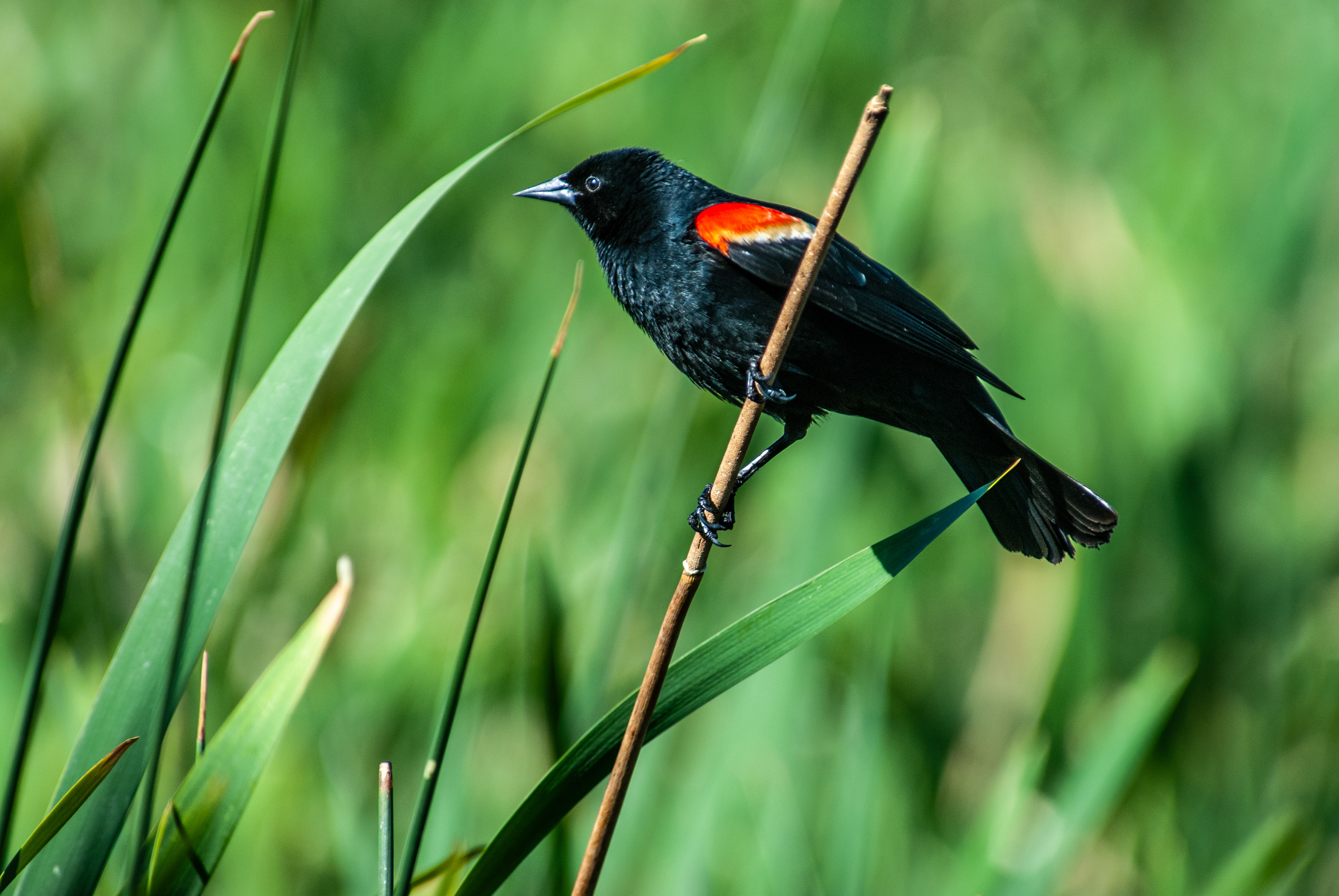 For generations, the sight of Red-winged Blackbirds has signaled the start of spring. It's worth pausing to watch the spring rituals of these social birds with glossy black bodies and red badges at the top of their wings (red with a stripe of yellow).