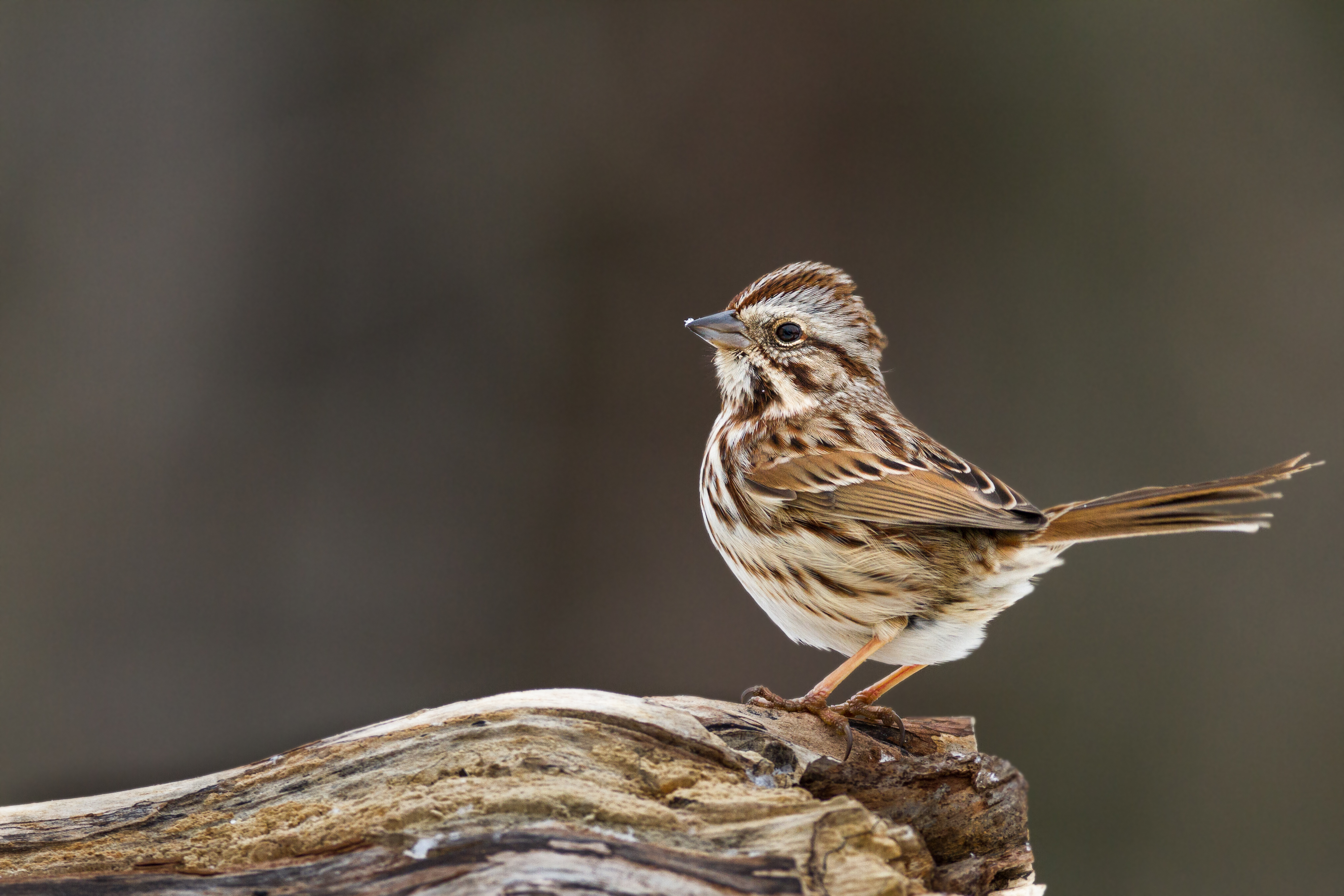 The song of the Song Sparrow stands out: three clear notes, followed by a trill and buzzes, finished with more clear notes. Scientists have discovered a male actually has 8 to 10 subtle variations in his arsenal, each with a specific purpose, like winning over a mate, claiming territory and warning intruders they’re about to be attacked. This complex communication system is essential for maintaining their territories, which are maintained from season to season and closely guarded.