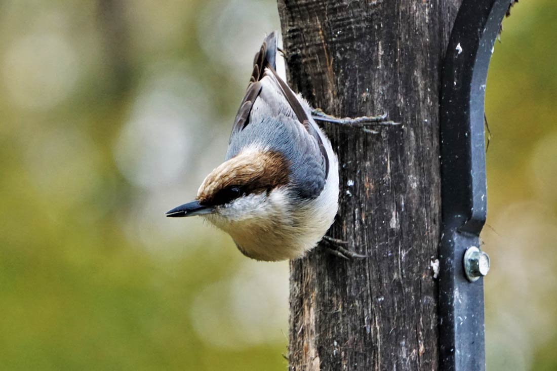 Unlike most animals, let alone other birds, the Brown-headed Nuthatch uses a tool. It sometimes carries a small piece of bark, using it as leverage to pry up larger bark on trees to look for insects, larvae and other food hiding beneath.