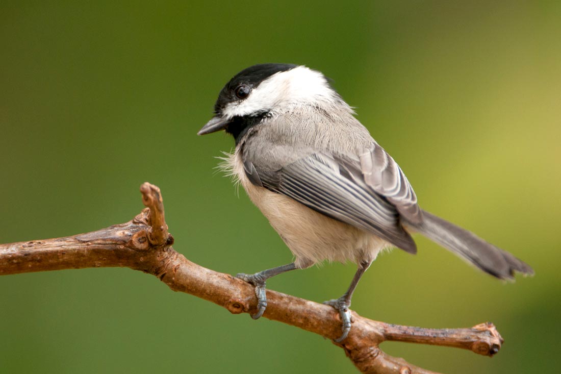 While the Carolina Chickadee looks almost identical to the Black-capped Chickadee, the two are separate species that most likely diverged more than 2.5 million years ago. The Carolina Chickadee, named by John James Audubon on a visit to South Carolina, is found primarily in the Southeast quadrant of the United States, while the Black-capped Chickadee’s territory expands across the Northern portion of the country.