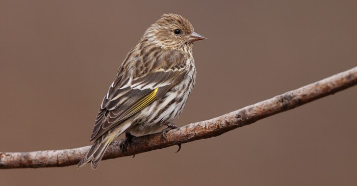 At first glance, the Pine Siskin looks much like a sparrow, with a finely pointed beak and streaky brown feathers covering their small bodies. However, in the wings and tail, you can make out punches of sharp, lemon-yellow lines. Their beaks have the conical shape that confirms their finch identity, equipping them to crush seeds.